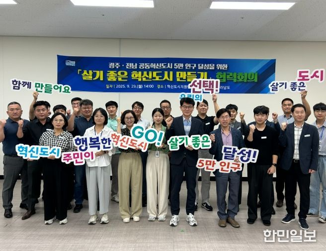 한민일보 서울포커스 박정민 기자 | 전라남도와 나주시는 29일 광주·전남 공동혁신도시 정주인구 5만 달성을 위한 ‘살기 좋은 혁신도시 만들기’ 협력 회의를 개최하고, 혁신도시 정주 여건 개선을 위한 다양한 방안을 강구했다고 밝혔다.