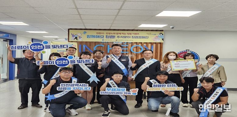한민일보 서울포커스 유창렬 기자 | 인천광역시는 인천시공무원노동조합과 함께 오는 9월 29일 본청 지하 구내식당 앞에서 추석맞이 청렴캠페인을 개최했다고 밝혔다.