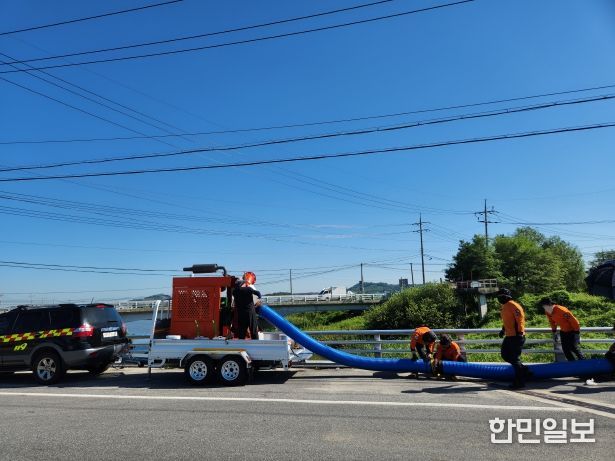 한민일보 서울포커스 최성훈 기자 | 충남소방본부 119특수대응단은 지난 27일 천안시 서북구 성거읍 일원에서 집중호우와 태풍으로 인한 인명·재산 피해 예방을 위한 대형 양수기 가동 현장 훈련을 추진했다고 29일 밝혔다.