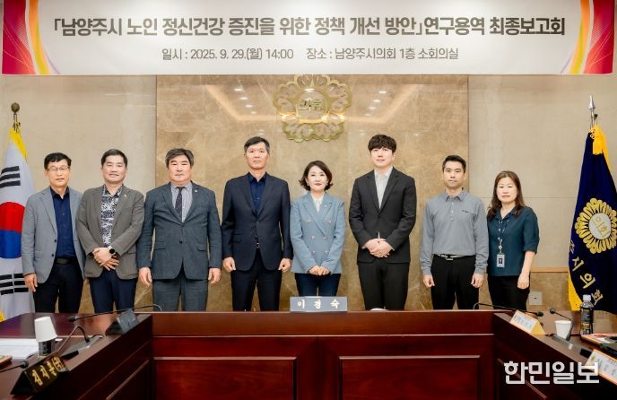 한민일보 서울포커스 김서윤 기자 | 남양주시의회는 29일 남양주시의회 소회의실에서 의원 연구단체인 ‘남양주시 노인 정신건강 증진을 위한 정책 개선방안 연구모임’의 연구용역 최종보고회를 개최했다.