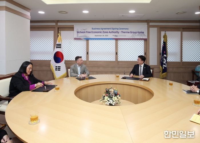인천경제자유구역은 29일 오후 송도지타워에서 윤원석 인천경제자유구역청장, 스텔리안 야콥(Stelian Iacob) 테르메그룹 부회장, 김인숙 테르메그룹코리아 대표 등이 참석한 가운데 ‘테르메 힐링&스파 리조트’ 사업 기본협약을 체결했다고 밝혔다.