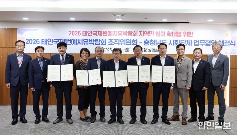 한민일보 서울포커스 박덕환 기자 | 2026 태안국제원예치유박람회 조직위원회는 29일 도청 상황실에서 도내 4개 사회단체와 박람회 성공 개최를 위한 협력을 다짐하는 업무협약을 체결했다.