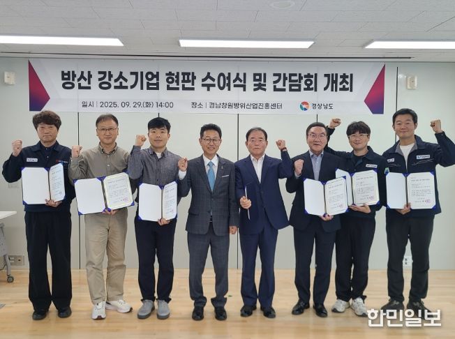 한민일보 서울포커스 임철현 기자 | 경상남도는 29일 경남창원방위산업진흥센터에서 ‘2025년 방산 강소기업 지정 현판식 및 기업 간담회’를 개최했다.