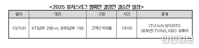 9월 29일(월) 열린 2025 퓨처스리그 챔피언 결정전 준결승전에서 남부리그 2위 KT는 북부리그 1위 한화를, 남부리그 1위 상무는 북부리그 2위 LG를 꺾고 각각 결승 진출에 성공했다.