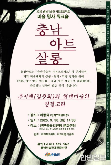 한민일보 서울포커스 박덕환 기자 | 충남도는 30일 천안예술의전당 문화센터에서 ‘2025 미술 명사 워크숍(충남 아트 살롱)’ 2회차 행사를 개최했다.