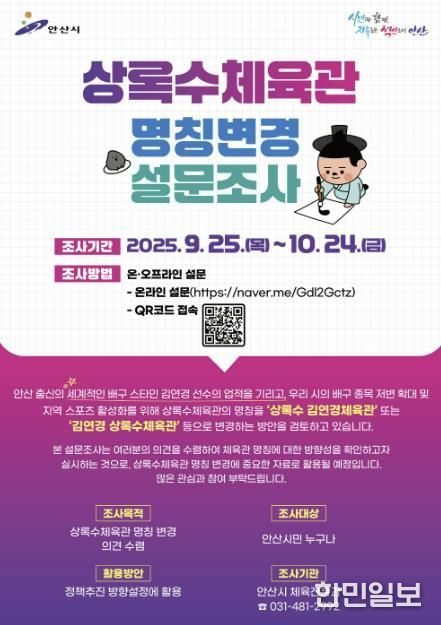한민일보 서울포커스 임철현 기자 | 안산시는 내달 24일까지 ‘상록수체육관’ 명칭 변경 설문조사를 실시한다고 30일 밝혔다.
