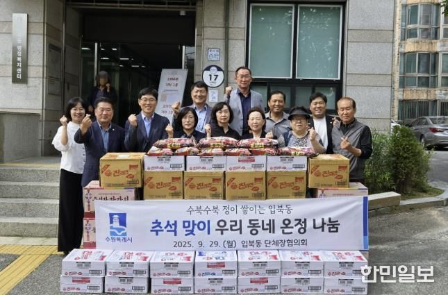 이경영 동장은 “경제적으로 어려운 시기에도 관내 취약계층을 위해 한결같은 온정과 관심을 베풀어 주신 민간기관과 단체, 개인 후원자분들께 감사드린다”라며 “소외되는 이웃 없이 입북동 주민 모두가 행복한 추석 명절 보내시길 바란다”라고 말했다.