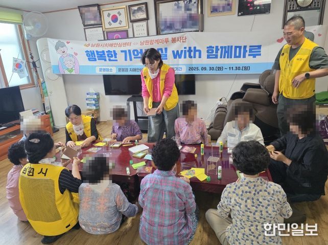 한민일보 서울포커스 박용남 기자 | 남원시치매안심센터(센터장 한용재)는 함께 마루 봉사단과 협력하여 오는 11월까지 운봉읍 관내 치매안심마을 4개 마을을 순회 방문하며 '행복한 기억교실 with 함께마루' 를 시범 운영한다고 밝혔다.