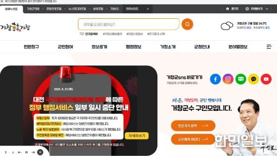 한민일보 서울포커스 김서윤 기자 | 거창군은 지난 26일 발생한 대전 국가정보자원관리원(국정자원) 화재와 관련해, 군민 불편을 최소화하고 안정적인 행정서비스를 제공하기 위해 총력을 기울이고 있다고 30일 밝혔다.