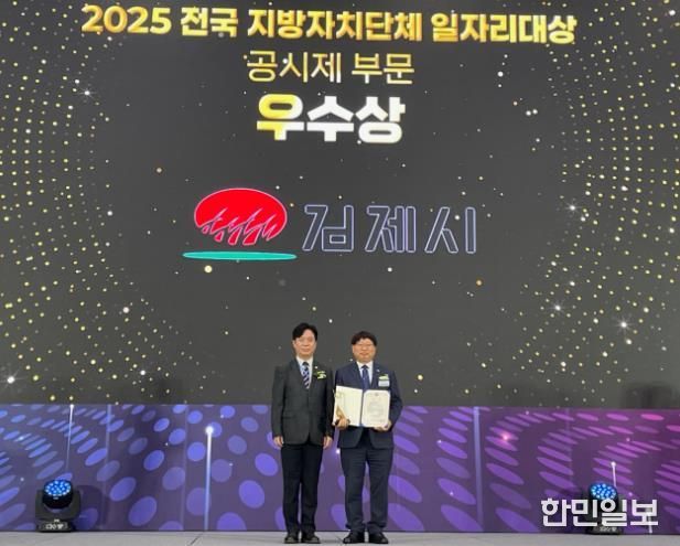 한민일보 서울포커스 박용남 기자 | 김제시는 30일 청주 오스코에서 열린 '2025년 전국 지방자치단체 일자리대상'시상식에서 공시제 부문 우수상을 수상하며 고용노동부 장관 표창과 함께 인센티브 사업비 5백만원을 확보했다고 밝혔다.