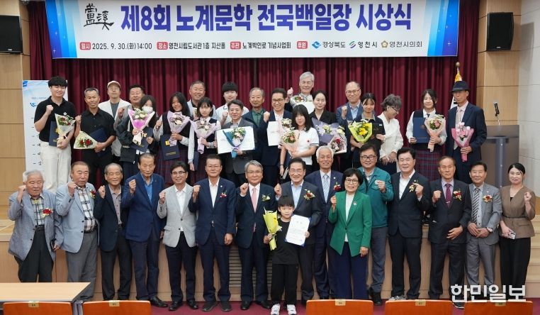 한민일보 서울포커스 김봉순 기자 | 영천시는 노계박인로기념사업회가 주최·주관하고 영천시가 후원한 ‘2025년 제8회 노계문학전국백일장 시상식’이 30일 시립도서관 지산홀에서 성황리에 열렸다고 밝혔다.