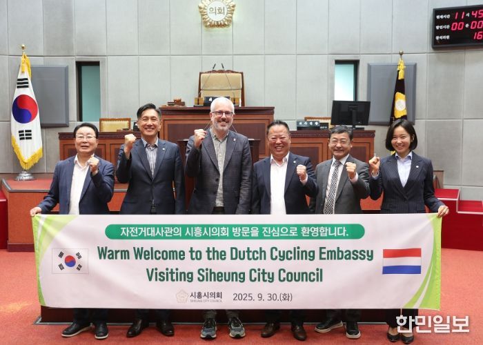 한민일보 서울포커스 유현민 기자 | 시흥시의회 도시환경위원회가 9월 30일 의회청사 소담뜰에서 네덜란드 자전거대사관(Dutch Cycling Embassy, DCE)을 초청해 간담회를 열고, 시흥시 자전거 정책 발전 방향과 친환경 교통 시스템 구축 방안에 대해 논의했다.