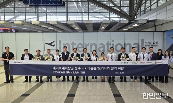 한민일보 서울포커스 임경복 기자 | 에어로케이항공이 30일 청주국제공항에서 ‘기타큐슈, 오키나와 정기노선 취항식’을 열고 본격 운항에 나섰다.