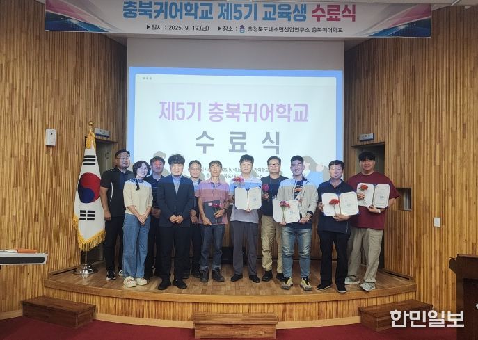한민일보 서울포커스 임경복 기자 | 충청북도내수면산업연구소는 지난 8월 25일부터 9월 26일까지 5주간 운영된 ‘2025년 충북 귀어학교 제5기 교육’을 성공적으로 마무리하고, 총 6명의 수료생을 배출했다고 30일 밝혔다.