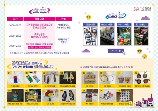한민일보 서울포커스 유돈상 기자 | 부여군은 오는 10월 4일 오후 2시부터 9시까지 백제문화단지 일원에서 '2025 문화가 있는 날 '구석구석 문화배달'' 제6회차 ‘우리동네 레트로 부여’ 행사를 제71회 백제문화제와 연계한 통합축제로 개최한다.