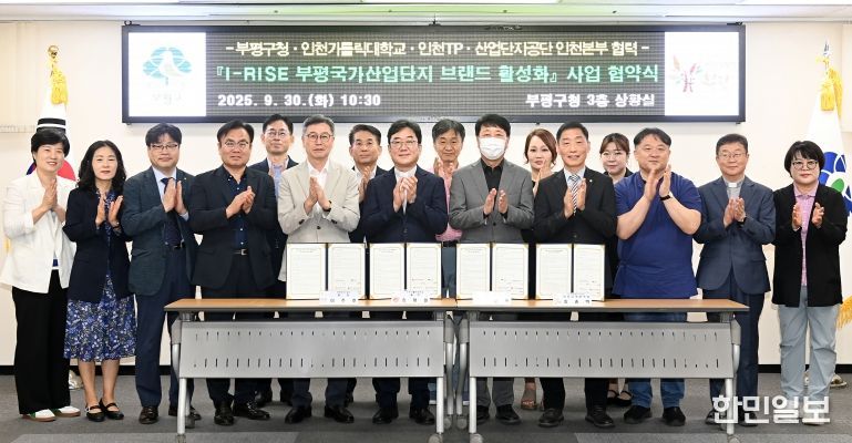 한민일보 서울포커스 김성혜 기자 | 부평구는 지난 30일 구청 상황실에서 인천가톨릭대학교 ·인천테크노파크·한국산업단지공단과 함께 ‘I-RISE 부평국가산업단지 브랜드 활성화 사업’ 협약을 체결했다.