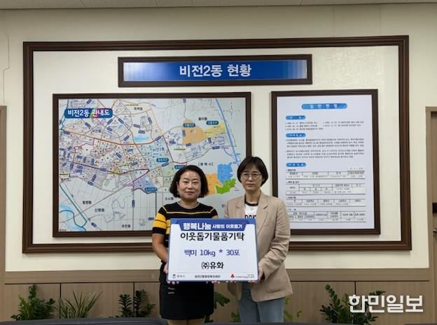 한민일보 서울포커스 황준형 기자 | ㈜유화는 추석 명절을 맞아 지난 29일 비전2동 행정복지센터를 방문하여 100만원 상당의 백미 30포를 전달하며 온정을 베풀었다.
