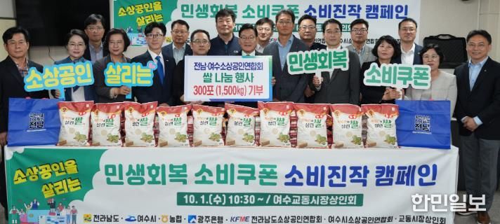 한민일보 서울포커스 박정민 기자 | 전라남도와 전남도 소상공인연합회는 1일 여수 교동시장에서 농협과 광주은행으로부터 기부받은 쌀(5kg) 300포를 활용해 지역민과 함께 나누는 ‘민생회복 소비쿠폰 소비 진작 캠페인’을 개최했다고 밝혔다.
