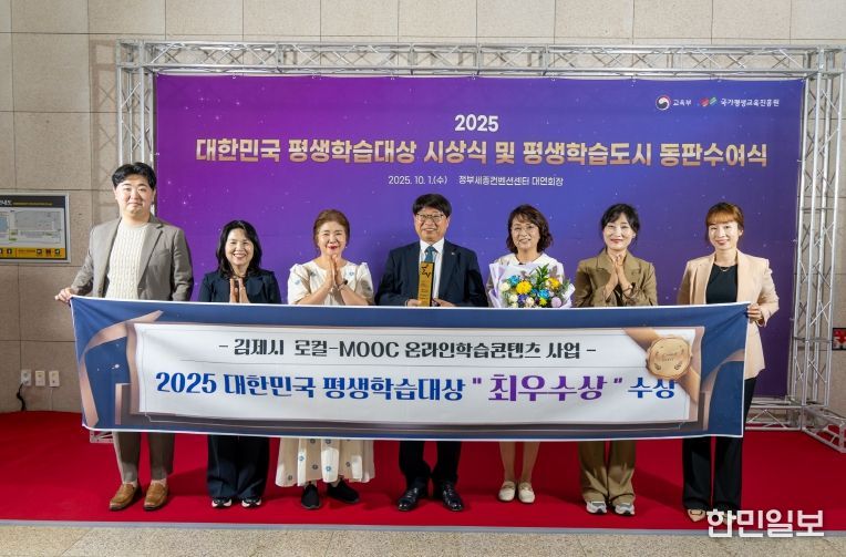 한민일보 서울포커스 박용남 기자 | 김제시가 생활 속 평생학습을 실천하고 있는 우수사례를 발굴해 시상하는 '제22회 대한민국 평생학습대상'에서 '디지털 학습시대 무형의 학습자산을 만드는 김제형 로컬-MOOC 구축사업'으로 올해의 평생학습사업 최우수상을 받았다.