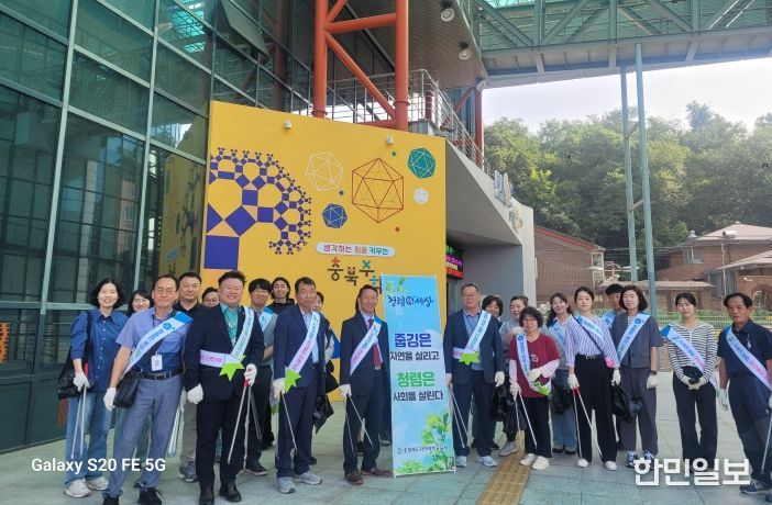 한민일보 서울포커스 임경복 기자 | 충청북도교육청 직속기관 자연과학교육원(원장 지성훈)은 1일, 당산공원에서 10월 직원 소통의 날 행사로 '청렴캠페인 겸 줍킹(Plogging) 환경정화 활동'을 전개한 뒤 오후에는 육거리전통시장을 찾아 명절맞이 장보기 행사에 전 직원이 동참했다.