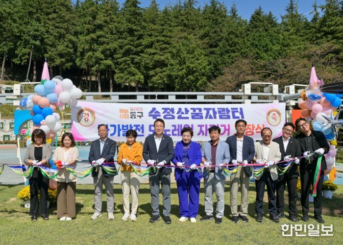 한민일보 서울포커스 임광현 기자 | 부산 동구의 대표적인 놀이터인 '수정산꿈자람터‘에서 10월 1일 오전 11시, ‘자가발전 모노레일 자전거 개장식’을 개최하고 본격적인 운영을 시작했다. 이날 개장식에는 김진홍 동구청장을 비롯해 구의원, 주민 대표, 지역 유치원생 등 100여 명이 참석해 축하 분위기를 더했다.
