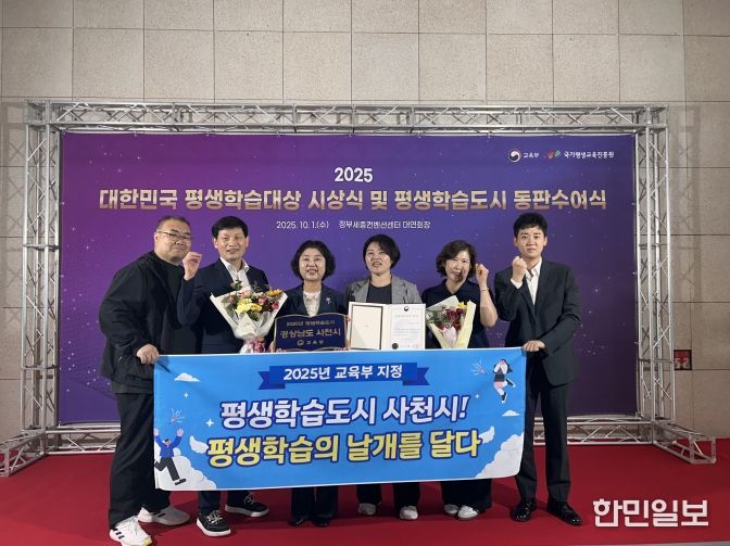 사천시는 10월 1일 정부세종컨벤션센터에서 열린 ‘2025년 평생학습도시 신규 지정 동판 수여식’에서 지정 증서와 동판을 수여 받았다.