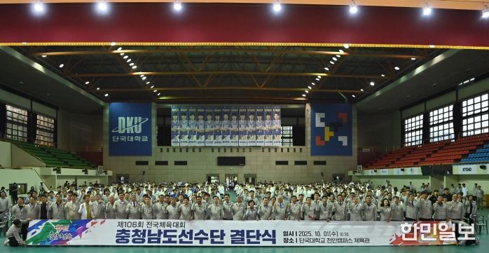 한민일보 서울포커스 최성훈 기자 | 충남도는 1일 단국대 천안캠퍼스 체육관에서 ‘제106회 전국체육대회 충남선수단 결단식’을 열고, 대회 출전에 대한 결의를 다졌다.