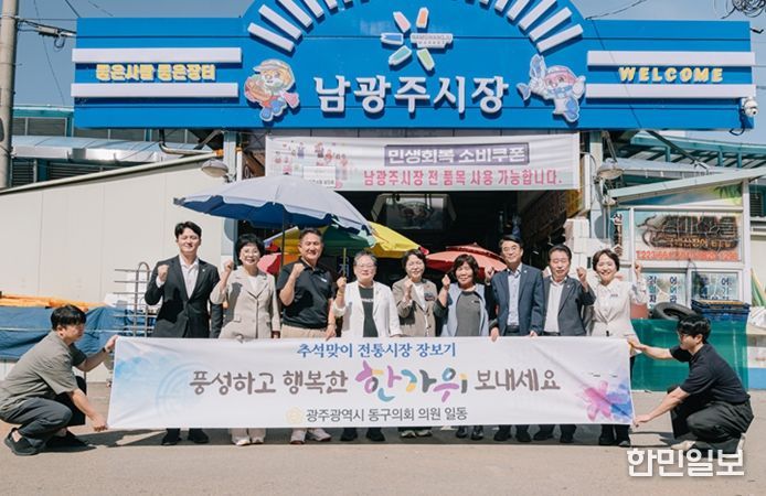 한민일보 서울포커스 박용남 기자 | 광주광역시 동구의회는 10월 1일 추석을 앞두고 지역 경제 활성화를 위해 대인시장, 남광주시장, 산수시장에서 동구랑페이를 활용해 ‘전통시장 장보기 행사’를 진행했다. 이번 행사는 고물가와 소비 위축으로 어려움을 겪는 전통시장의 활력 회복을 돕고, 현장 중심의 소통을 강화하기 위해 마련됐다.