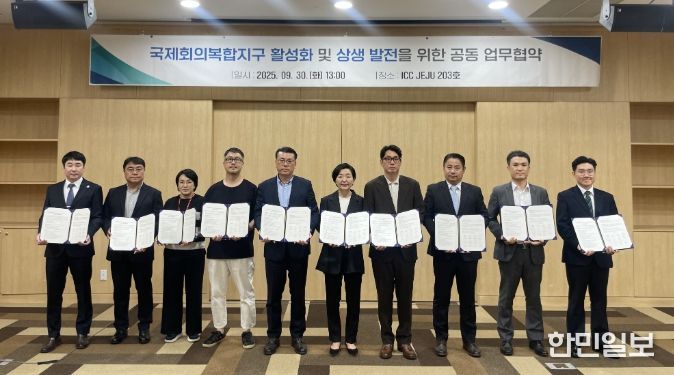 한민일보 서울포커스 임철현 기자 | 제주국제컨벤션센터(대표이사 이선화, 이하 ICC JEJU)는 9월 30일(화) 신라호텔 제주, 롯데호텔 제주, 파르나스호텔 제주 등 제주국제컨벤션센터 주변 숙박 및 관광시설 11곳과 ‘제주 국제회의복합지구 활성화 및 상생 발전을 위한 업무협약’을 체결했다.