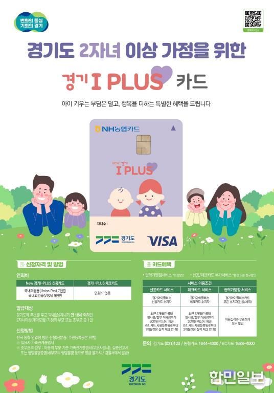 경기 아이플러스 카드는 2자녀 이상 다자녀가정에 다양한 경제적 혜택과 문화생활을 지원하기 위해 경기도와 농협, BC카드가 협력해 운영하는 사업이다.