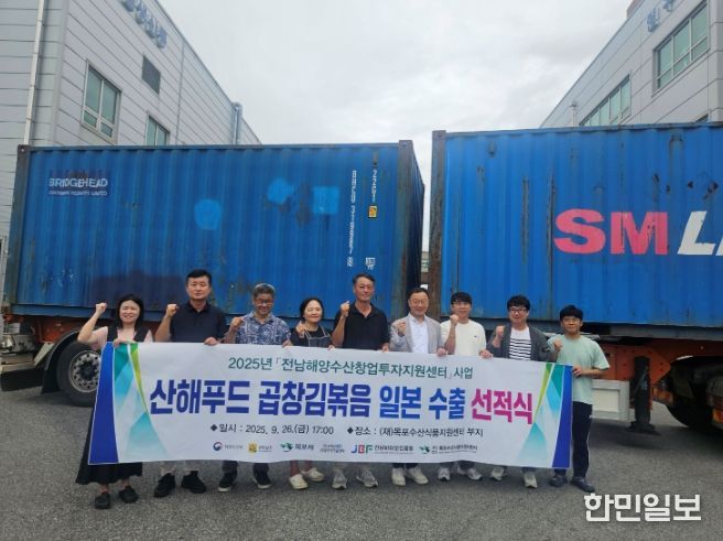 한민일보 서울포커스 임광현 기자 | (재)목포수산식품지원센터는 9월 26일, 전남해양수산창업투자지원센터 사업 수혜기업인 산해푸드(대표 오시윤)가 일본 바이어와 체결한 2만3천 달러(한화 약 3천2백만 원) 규모의 곱창김 제품 수출 계약에 따라 센터에서 선적식을 개최했다고 밝혔다.