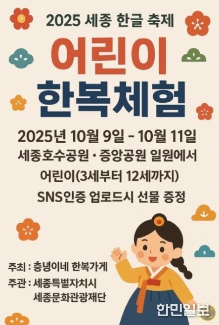 한민일보 서울포커스 임철현 기자 | 오는 10월 9일부터 11일까지 세종호수공원 일원과 시 전역에서 ‘2025 세종한글축제’가 열린다.