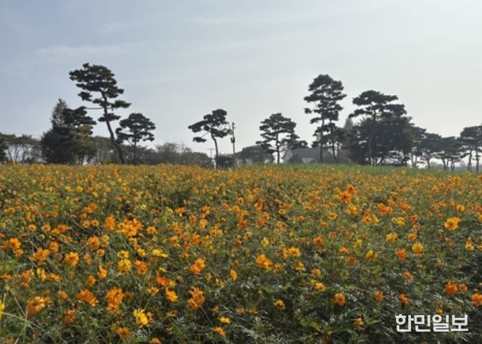 한민일보 서울포커스 전희주 기자 | 여주시 남한강 출렁다리 남단 일원 연양동에 위치한 금은모래강변공원 초화원에 황화코스모스가 만개하여 손님맞이 준비를 마쳤다.