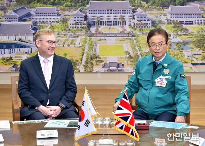 한민일보 서울포커스 임철현 기자 | 이철우 경상북도지사는 3일 도청을 방문한 콜린 크룩스(Colin Crooks) 주한 영국대사 내외와 만나, 경주 APEC 정상회의의 성공적 개최 협력 방안과 함께 산업·문화·교육 등 다양한 분야의 교류 확대를 논의했다.