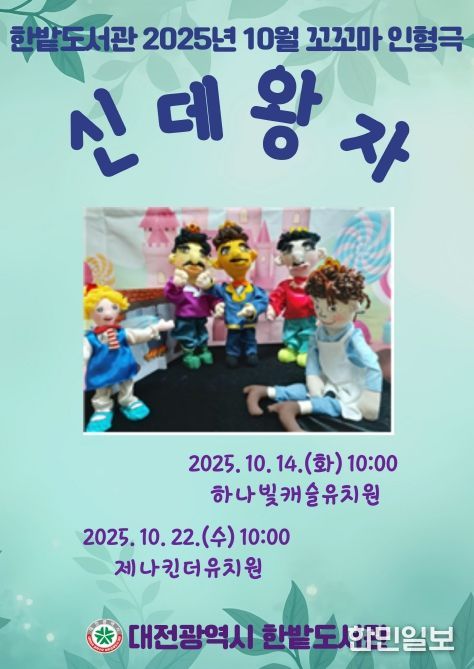 한민일보 서울포커스 김서윤 기자 | 대전 한밭도서관은 어린이의 감정 표현과 상상력을 키우기 위해 유치원을 직접 찾아가는 독서문화 프로그램으로 손인형극 ‘신데왕자’를 공연한다.