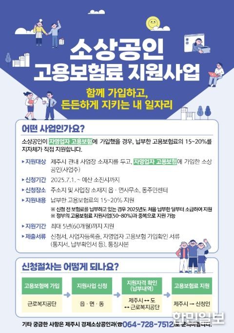 한민일보 서울포커스 김다남 기자 | 제주시는 지역 소상공인의 사회안전망을 강화하고 출산 후 소득 단절 문제를 해소하기 위해 ‘소상공인 고용보험료 지원사업’과 ‘1인 소상공인 출산급여 지원사업’을 연중 신청받는다.