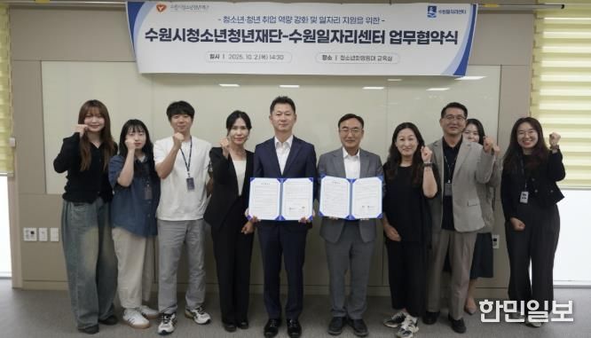 한민일보 서울포커스 진광성 기자 | 수원시청소년청년재단과 수원일자리센터는 10월 2일, 청소년청년의 취업 역량 강화와 일자리 지원을 위한 업무협약(MOU)을 체결했다.