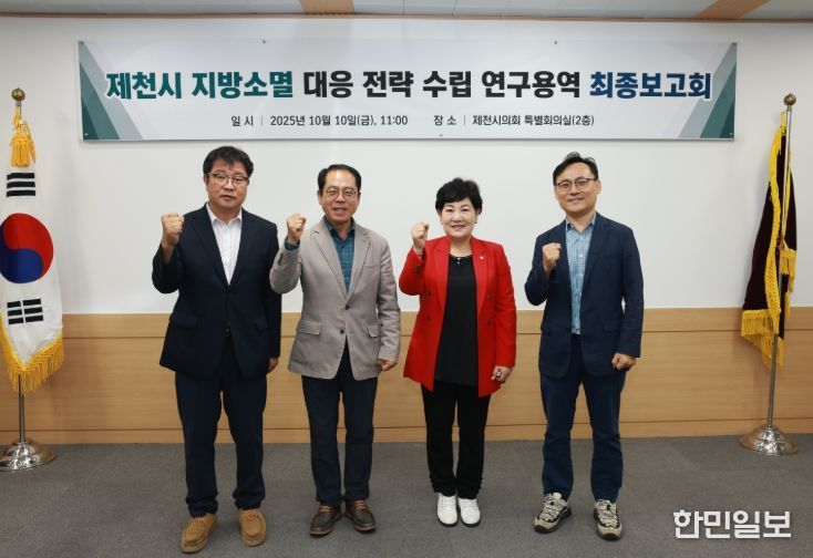 한민일보 서울포커스 김다남 기자 | 제천시의회 의원연구단체 ‘살기좋은 도시 제천의 매력’(이정임 의원·박해윤·이재신 의원)은 10일 제천시의회 특별위원회실에서 '제천시 지방소멸 대응 전략 수립 연구용역' 최종보고회를 열어 약 5개월간 진행된 연구용역의 결과를 공유했다.