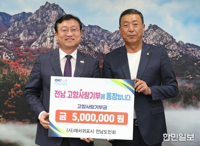 한민일보 서울포커스 박정민 기자 | 전라남도는 (사)재서귀포시 전남도민회가 지난 10일 고향사랑기부금 500만 원을 전남도에 기탁했다고 밝혔다.