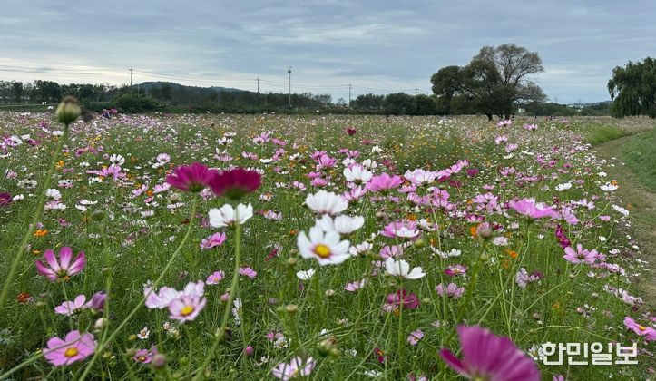 한민일보 서울포커스 김다남 기자 | 청주시 무심천이 가을빛 코스모스로 물들고 있다.