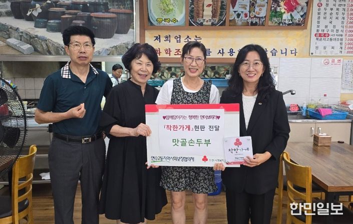 한민일보 서울포커스 백진욱 기자 | 연수구 연수2동 지역사회보장협의체는 지난달 29일 관내 장기요양기관 ‘엔젤복지용구’와 식당 ‘맛골 손두부’에 나눔 인증 ‘착한가게’ 현판을 전달하고 지역사회 나눔 실천에 감사의 뜻을 표했다.