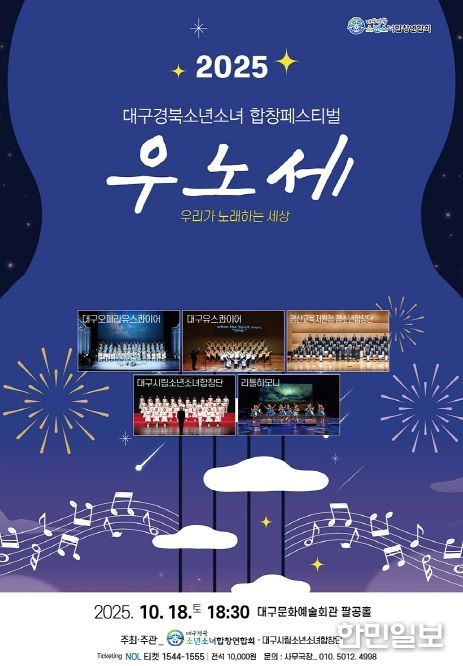 이번 합창제에는 대구시립소년소녀합창단, 대구유스콰이어, 경산교육지원청 청소년합창단, 리틀하모니, 대구오페라유스콰이어가 참여해 다채로우면서도 조화된 무대를 선보인다.