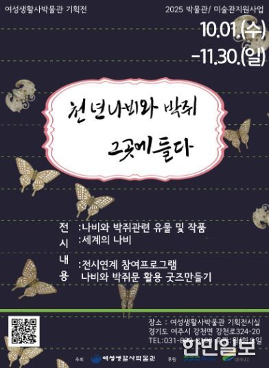한민일보 서울포커스 전희주 기자 | 여주시에서 진행하는 2025년 박물관·미술관 지원사업의 일환으로 여성생활사박물관의 ‘천년 나비와 박쥐 그곳에 들다’ 전시가 10월 1일부터 11월 30일까지 개최된다.