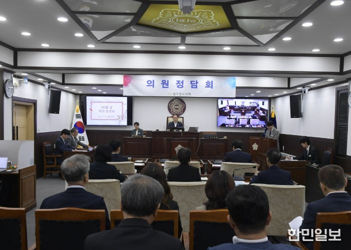 한민일보 서울포커스 임경복 기자 | 동두천시의회는 10월 13일 2층 본회의장에서 ‘10월 중 동두천시의회 의원정담회’를 개최했다. 정담회에서는 시의 주요 현안과 정책 추진 방향을 공유하고 조례안과 2026년도 출자출연금 사전의결안, 사업 보고 등 다양한 안건에 대해 심도있는 논의가 이뤄졌다.