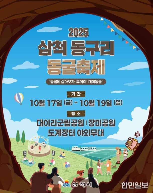 한민일보 서울포커스 임경복 기자 | 삼척 동구리 동굴축제가 10월 17~19일 대이리군립공원(대이동굴)·삼척장미공원·도계장터 야외무대에서 동시에 열린다. ‘동굴에 살아보자, 투데이! 대이동굴’을 슬로건으로 한 올해 축제는 가족 공연과 실감형 동굴체험, 도심·생활권 무대를 셔틀망으로 연결하는 분산형 운영으로 하루 동선을 완성했다.