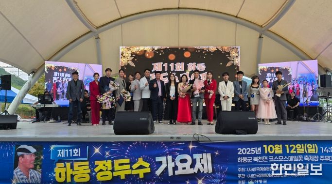 한민일보 서울포커스 김서윤 기자 | 대한민국 대중가요의 거장 故정두수 작사가를 기리는 ‘제11회 정두수 가요제’가 10월 12일 하동 북천 코스모스 축제장에서 성황리에 개최됐다.