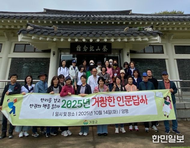 한민일보 서울포커스 김서윤 기자 | 거창군은 지난 14일 경기도 양평 일원에서 2025년 제3차 거창한 인문답사를 진행했다고 밝혔다. 이번 인문답사는 ‘좌초된 꿈을 학문으로 승화시킨 정약용과 실학정신’을 주제로 마련됐으며, 다산 정약용의 생가와 두물머리를 탐방하며 조선 후기 실학사상의 중심이었던 다산의 발자취를 따라갔다.