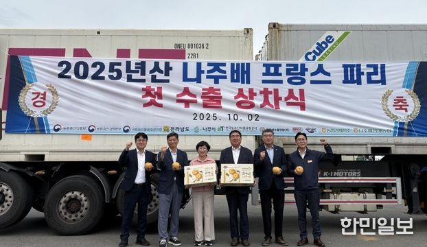 나주시(시장 윤병태)는 최근 장현순 네시피F&B 대표, 이동희 나주배원예농협 조합장, 최명수 전남도의원 등 관계자가 참석한 가운데 나주배 프랑스 첫 수출 상차식을 진행했다고 14일 밝혔다.