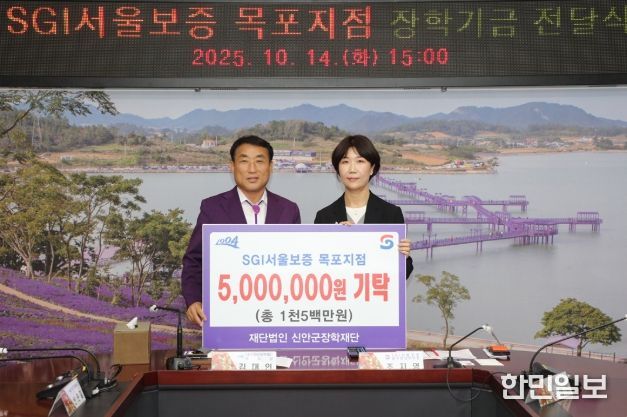 한민일보 서울포커스 임광현 기자 | SGI서울보증(대표이사 이명순) 목포지점이 10월 14일, 신안군장학재단(이사장 김대인)에 신안군 인재육성을 위한 장학기금 500만 원을 기탁했다.