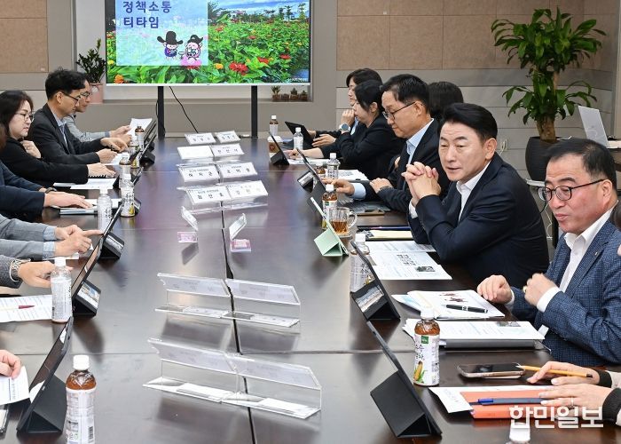 한민일보 서울포커스 심기옥 기자 | 의정부시는 10월 15일 시청 회룡홀에서 시장을 비롯해 부시장, 행정안전국장, 권역동 동장 및 관련 부서장 등 30여 명이 참석한 가운데 ‘10월 동장단 정책소통 티타임’을 개최했다.